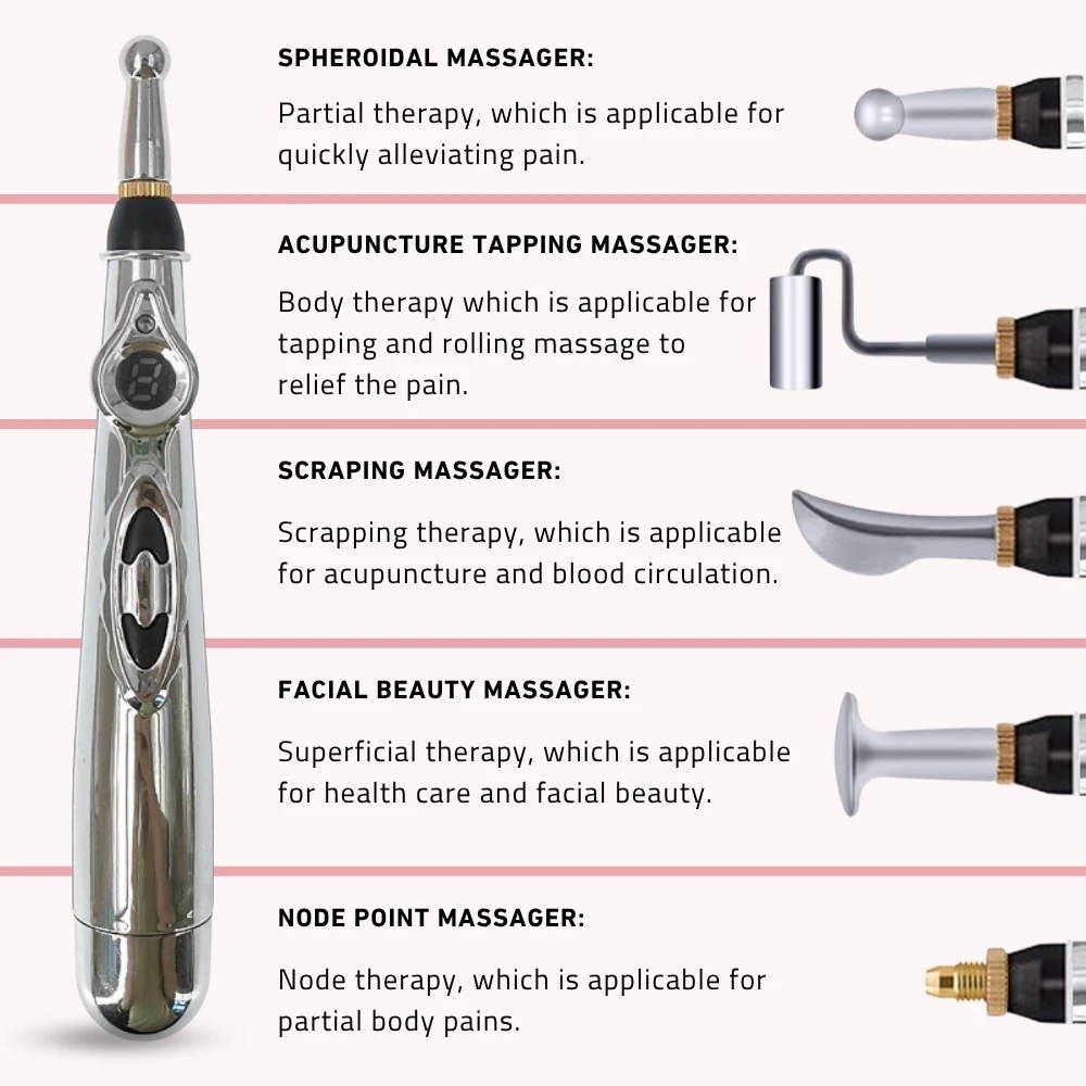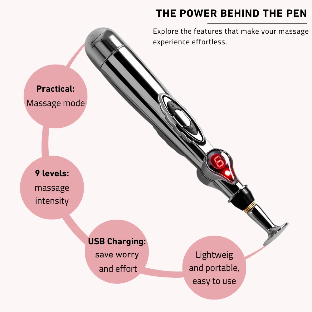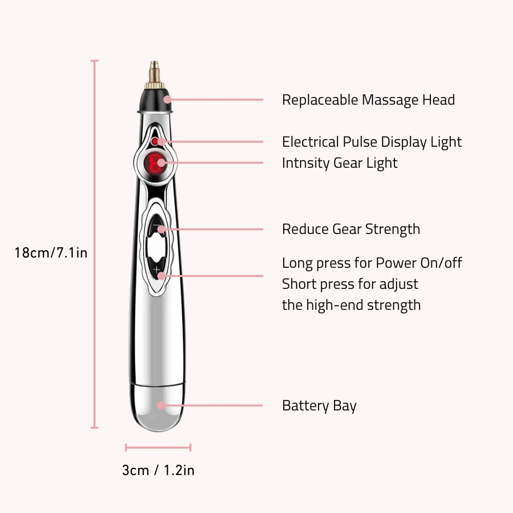The Electric Acupuncture Pen is an innovative massager using gentle electrical pulses to stimulate acupoints, relieve pain, and boost blood circulation — completely needle-free and easy to use.