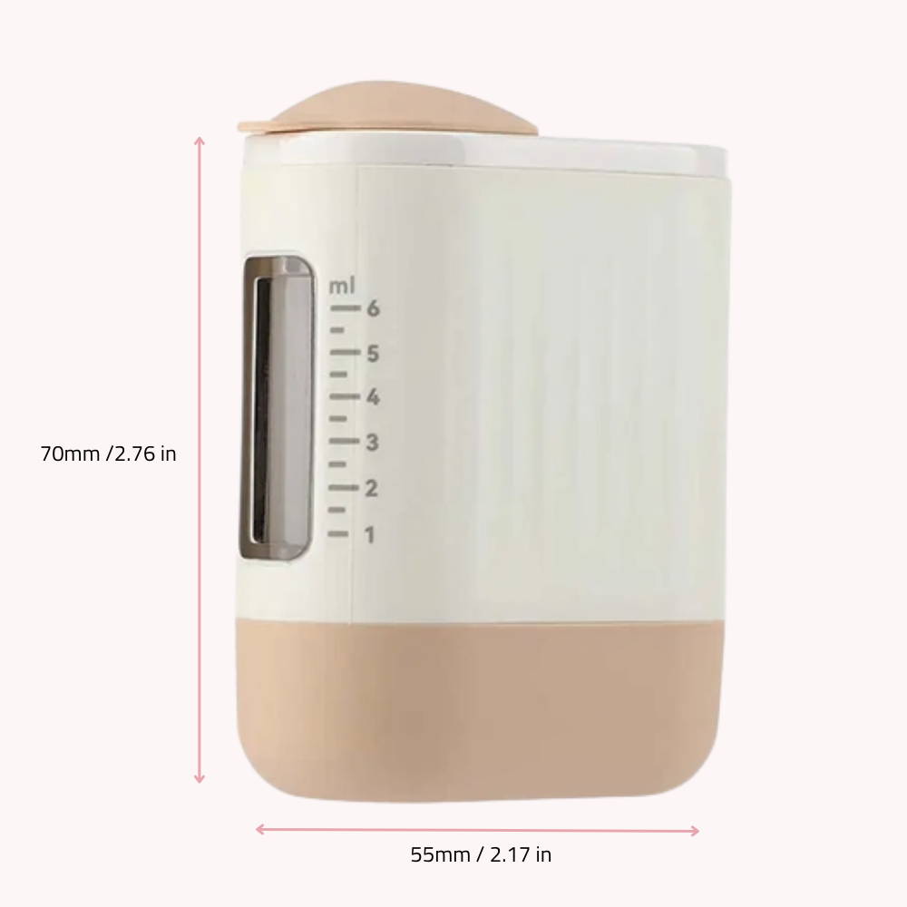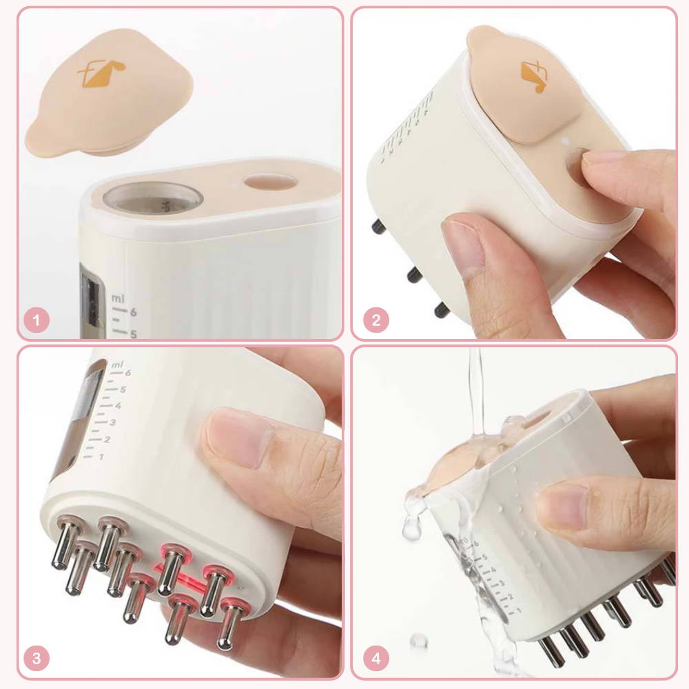 The integrated reservoir has a 6 ml capacity, with visible graduations for precise dosing. Perfect for applying the right amount of treatment without waste.