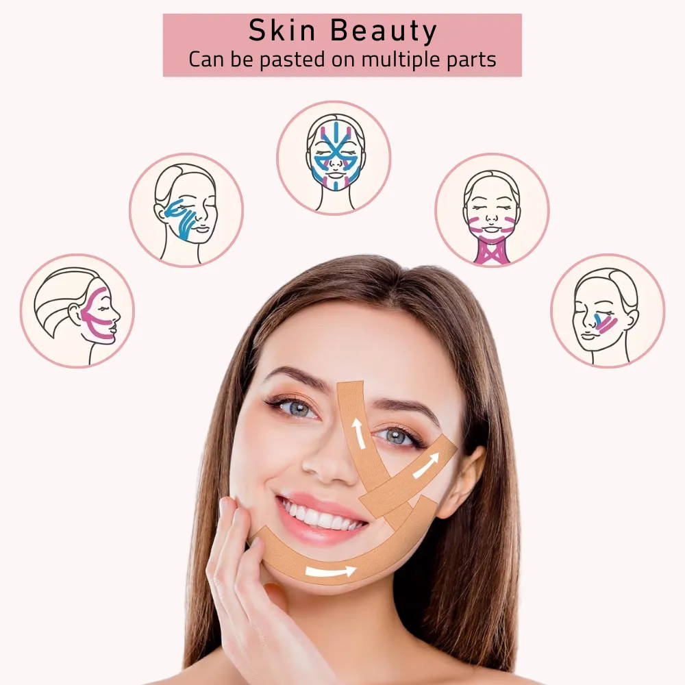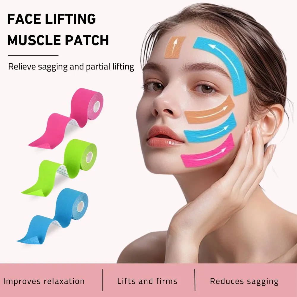 The Facial & Neck Kinesiology Tape gently supports muscles and skin, improving natural tension, smoothing facial lines, and promoting better local circulation for a more lifted, relaxed appearance.