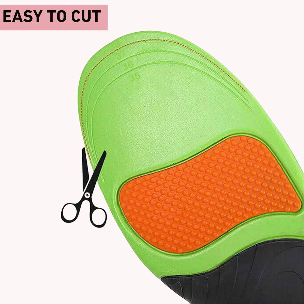 Each pair includes adjustable cutting lines. Simply trim along the guides until the insole fits perfectly inside your shoe and matches your exact foot size.