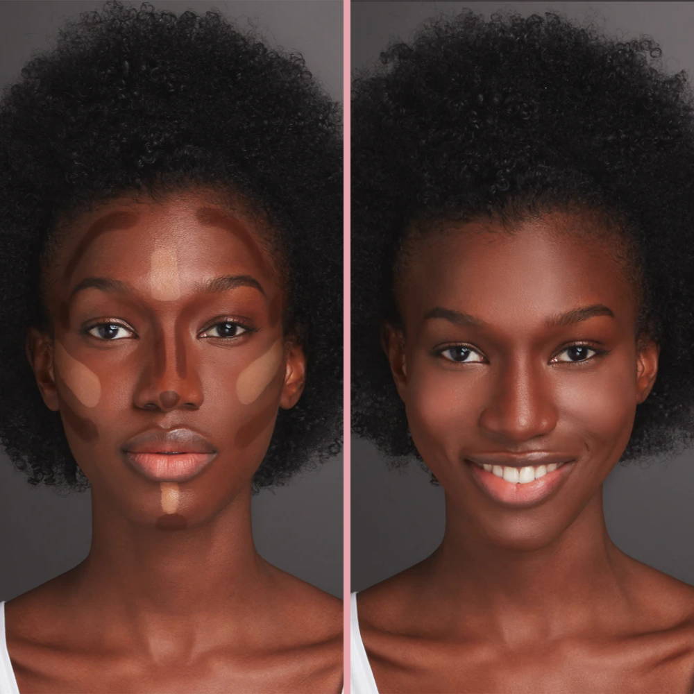 After application, use a light setting powder to extend wear and prevent any transfer.