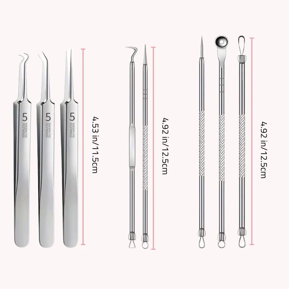It helps remove blackheads, closed comedones, and small blemishes with better precision than fingers. The tools support controlled, targeted cleaning—especially useful on the nose and tight areas.